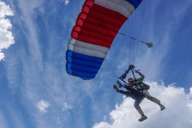 With a sudden, firm tug, the parachute deployed. The roar vanished instantly, replaced by an eerie, breathtaking silence.